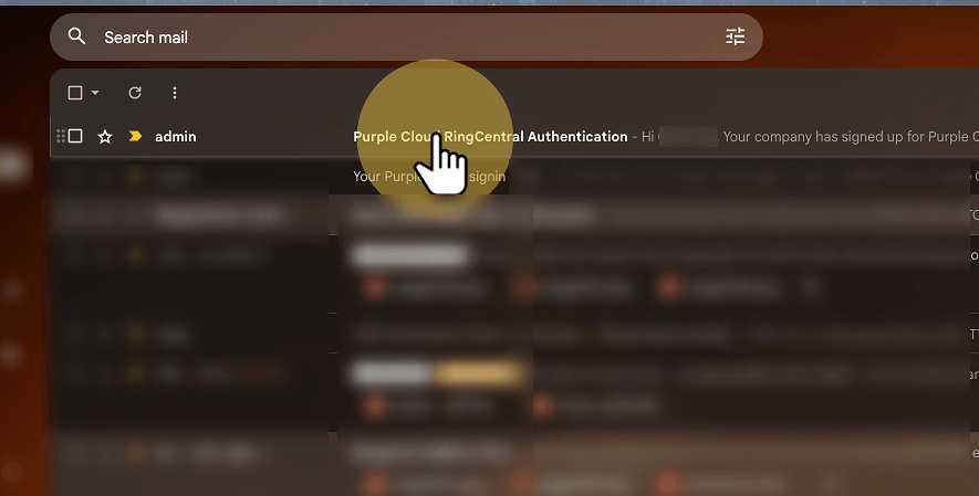 1. Open the email from admin with the subject Purple Cloud RingCentral Authentication.