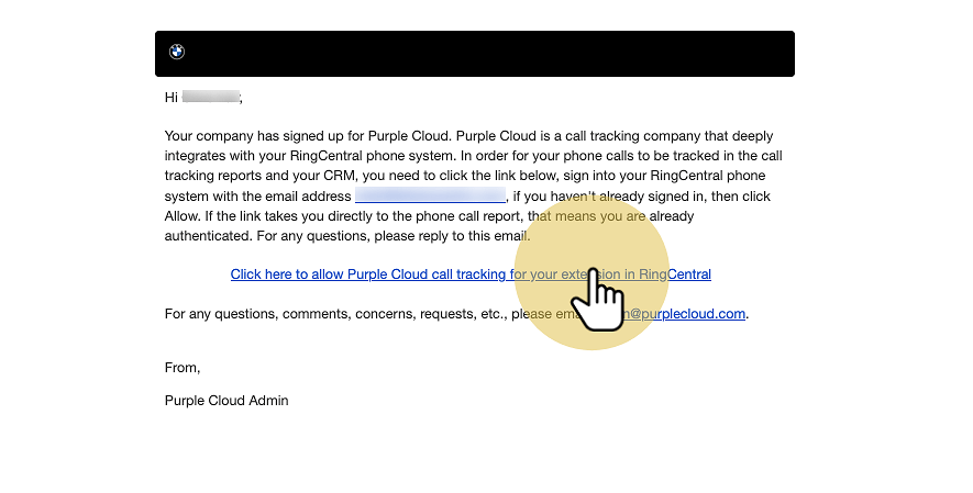 2. Click the link to enable Purple Cloud call tracking for your RingCentral extension.