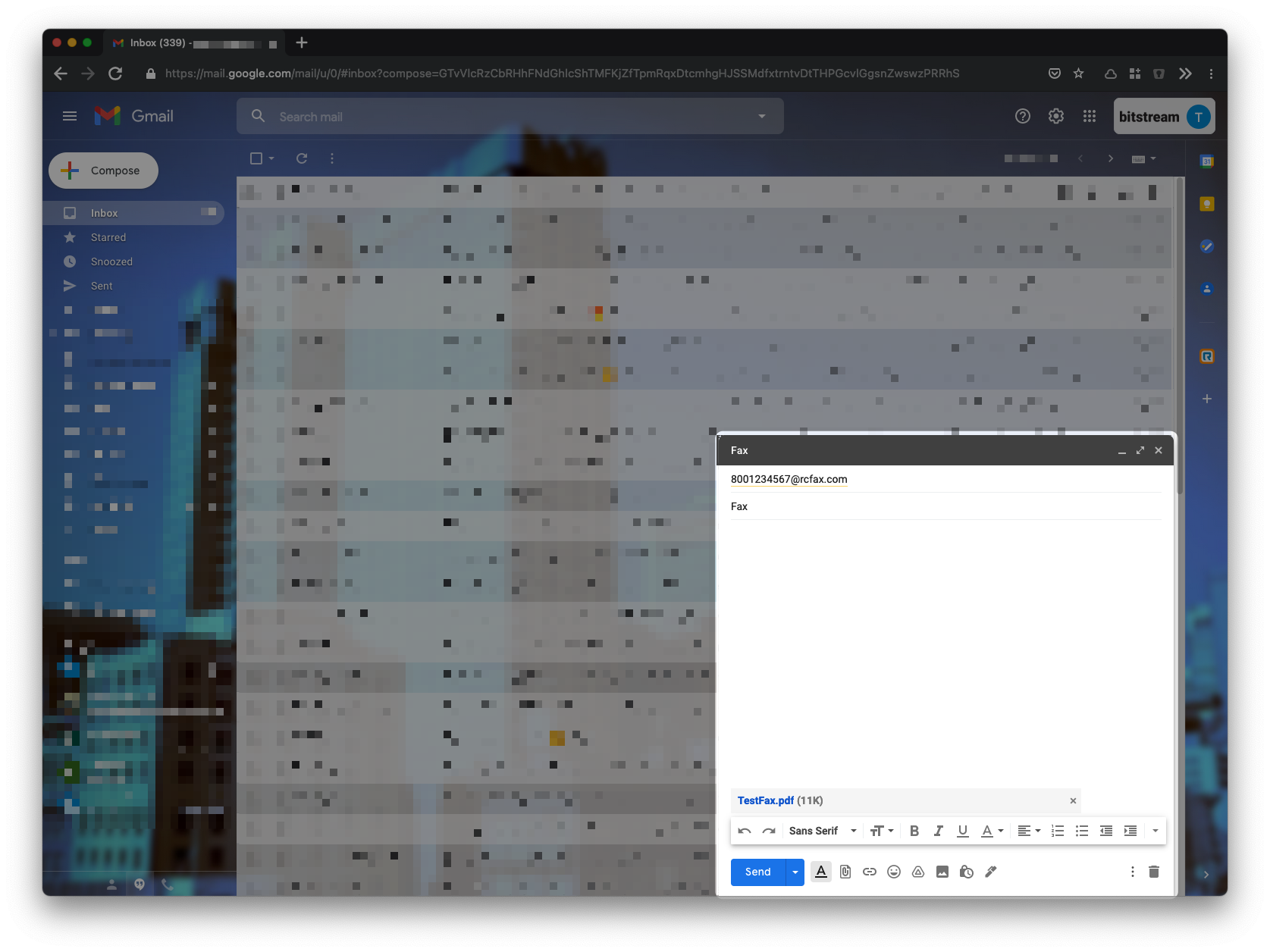 In the To: field, enter the recipient's [fax-number]@rcfax.com