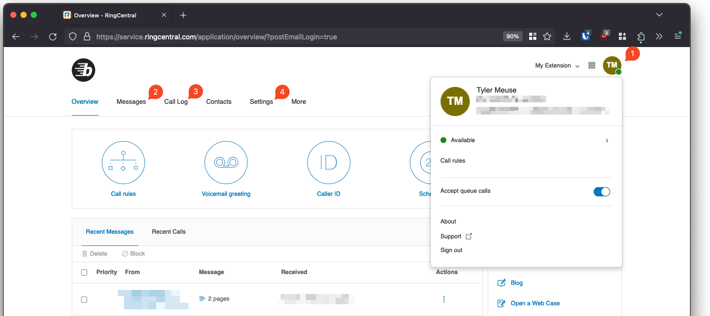 RingCentral: Web Portal Usage Guide⚓︎