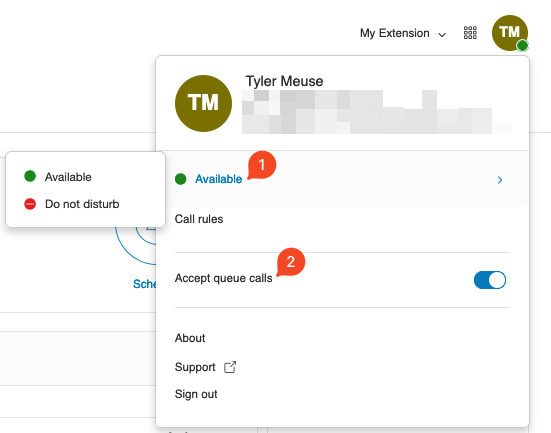 You can also toggle Accept queue calls, if you are a call queue (group) member and wish to silence them.