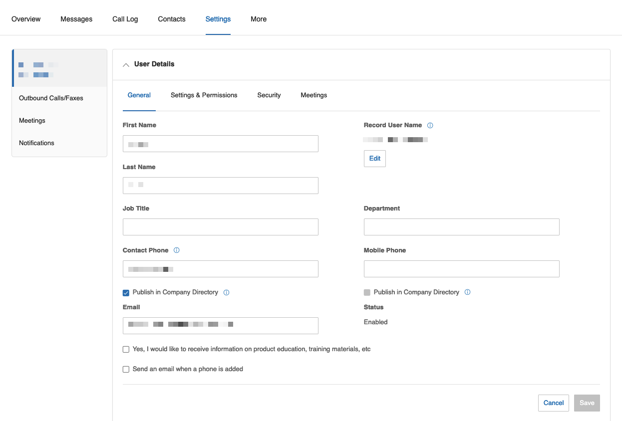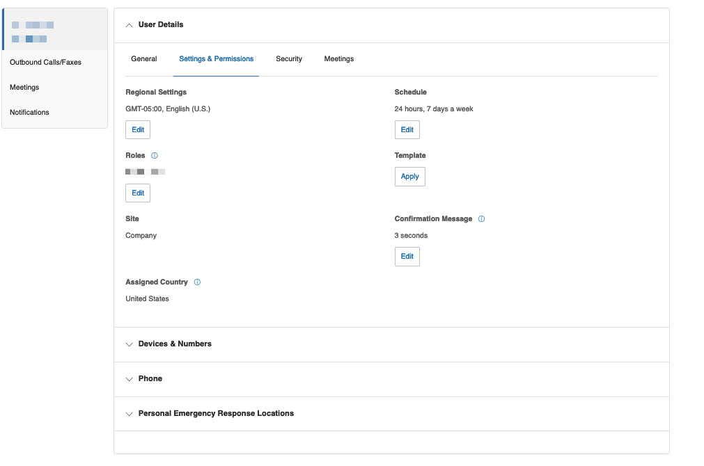 Here, you can edit details about yourself. Use the Settings & Permissions tab to change your active hours. Or, use the Security tab to update your password and/or voicemail PIN.
