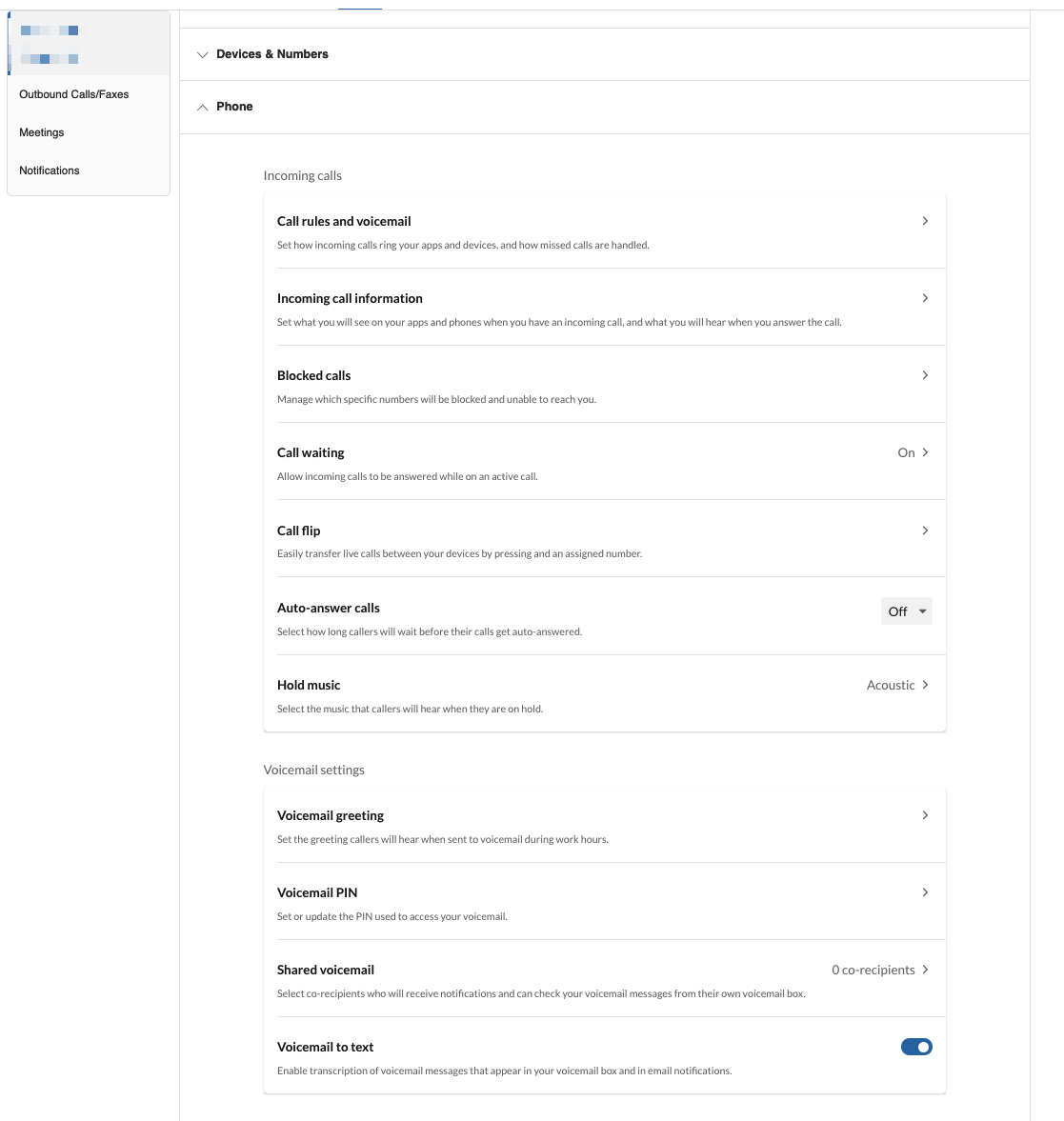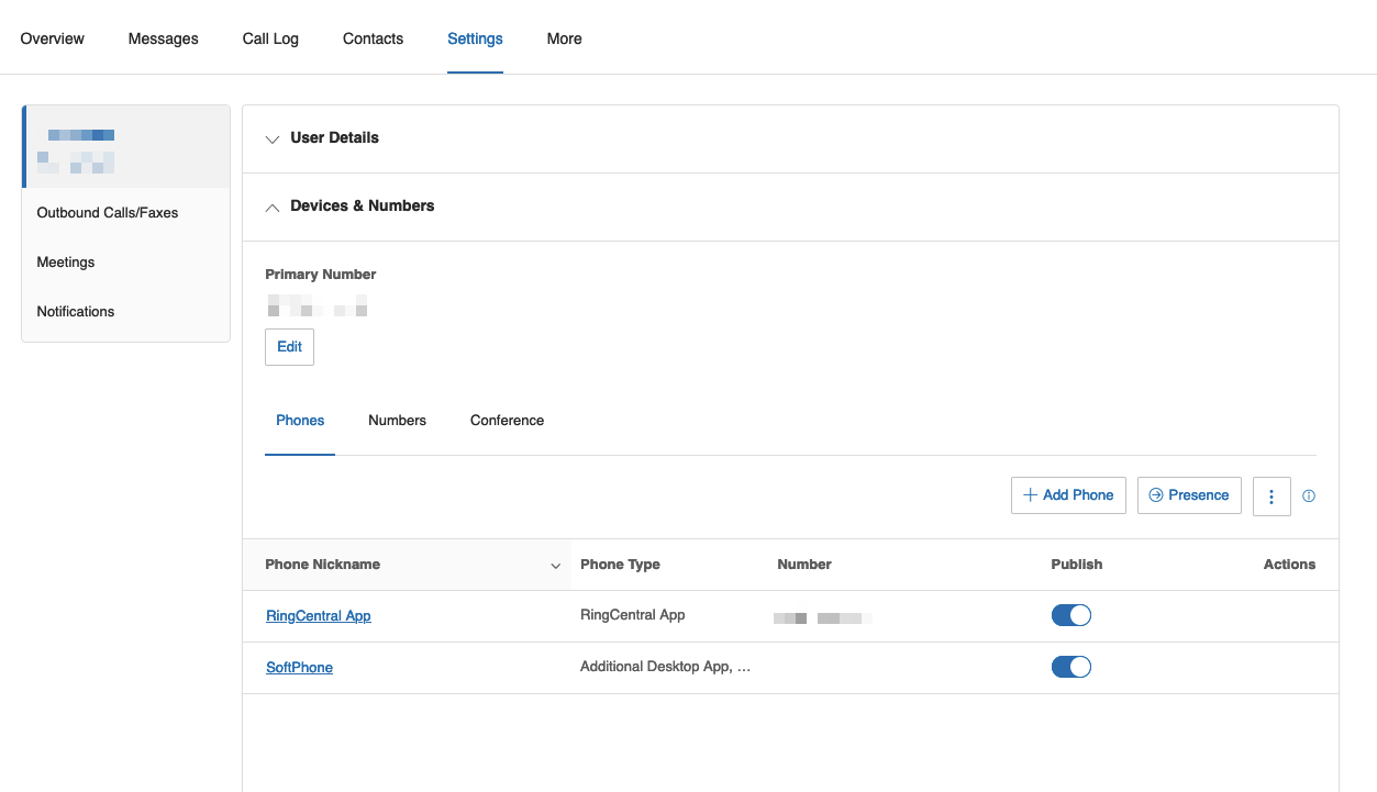 This tab allows you to edit your RingCentral settings, and customize the call handling and experience. The following explains the purpose of each section: