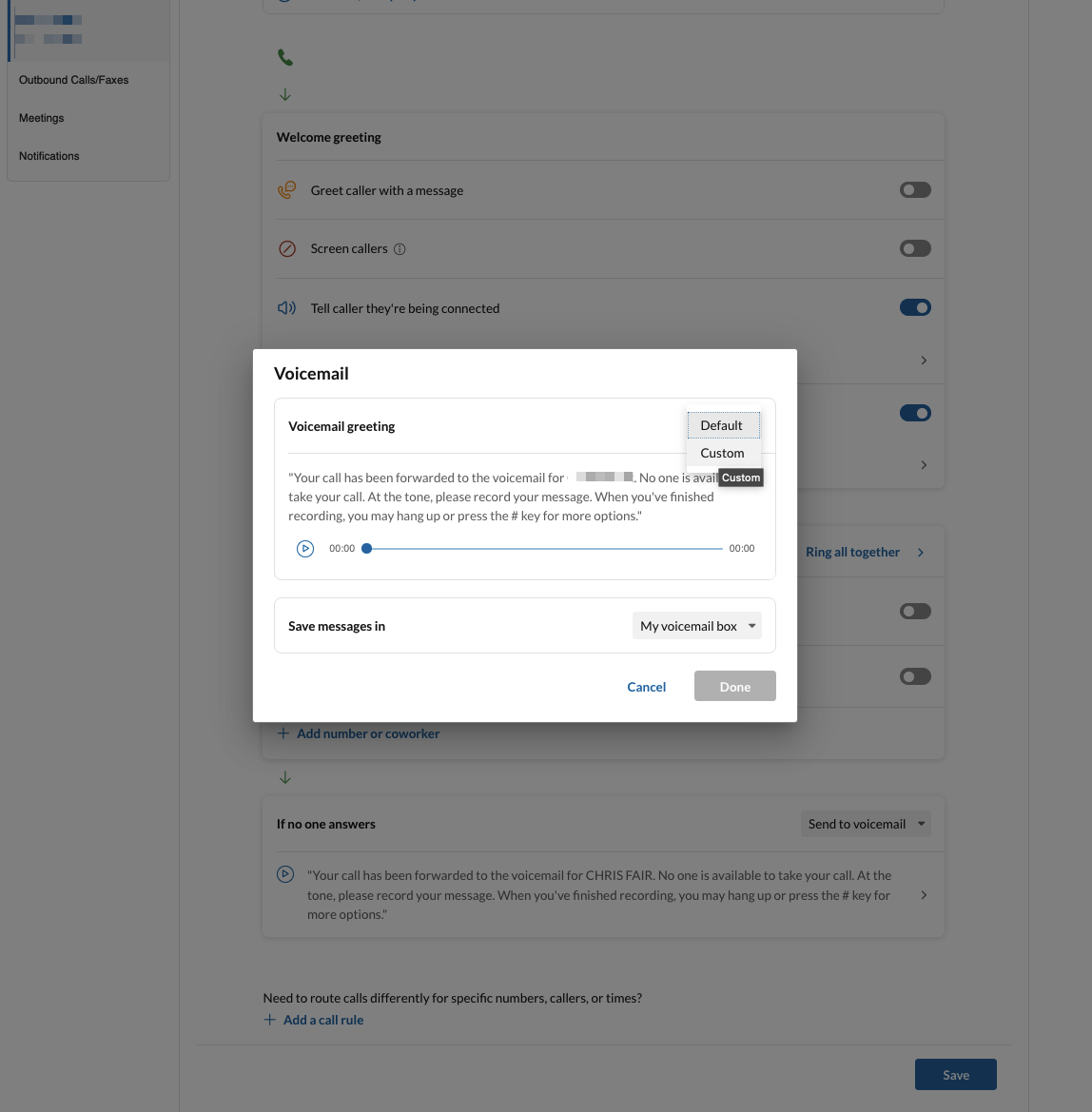You may also configure your voicemail message from here.